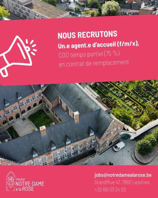 Un.e Agent.e d’accueil (f/m/x), CDD temps partiel (75 %) en contrat de remplacement L’ASBL Office de Tourisme-Musée de l’Hôpital Notre-Dame à la Rose recrute un.e Agent.e d’accueil (f/m/x) en contrat de remplacement (CDD temps partiel 0.75ETP) pour une entrée en fonction dès le mois d’octobre. Nous recherchons un(e) Agent.e d’accueil dynamique et polyvalent.e, chargé.e d’accueillir…