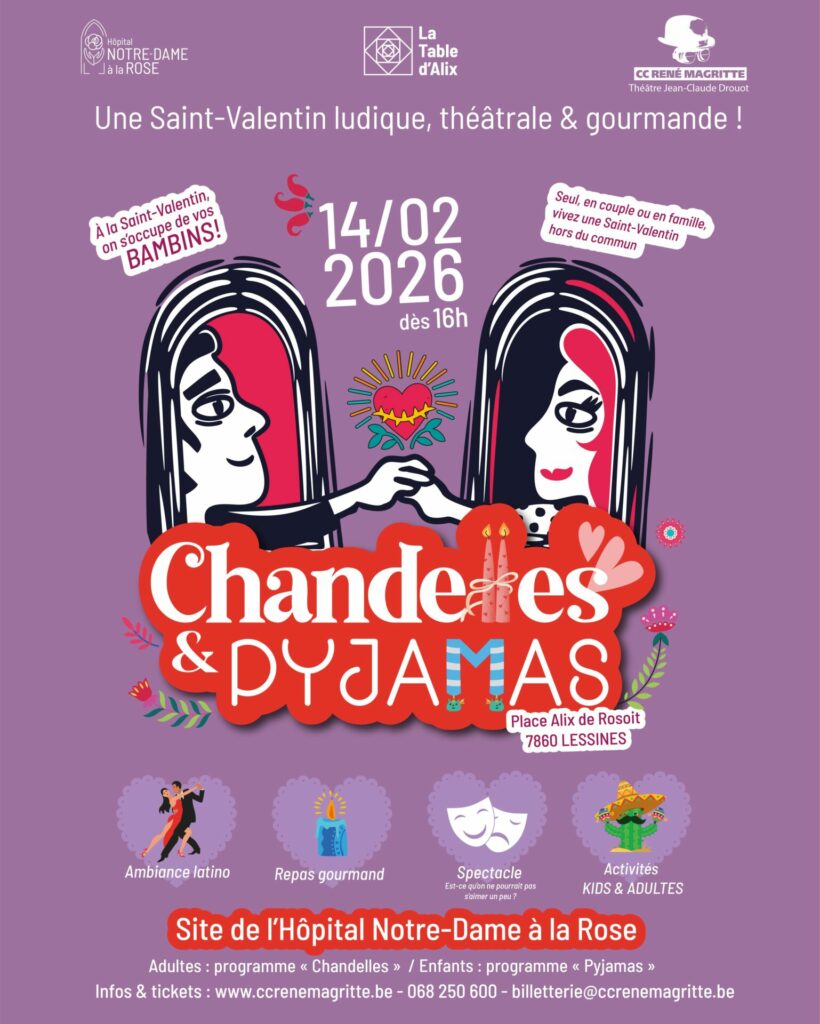 Chandelles & pyjamas, in samenwerking met La Table d’Alix en het Centre Culturel René Magritte.