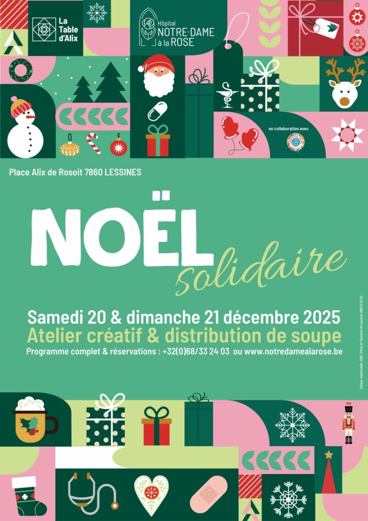 Cette année, l’Hôpital Notre-Dame à la Rose propose des activités chaleureuses ouvertes à tous : un atelier créatif éco-responsable et une distribution (gratuite) de soupe collective complèteront votre menu de fêtes lessinoises.